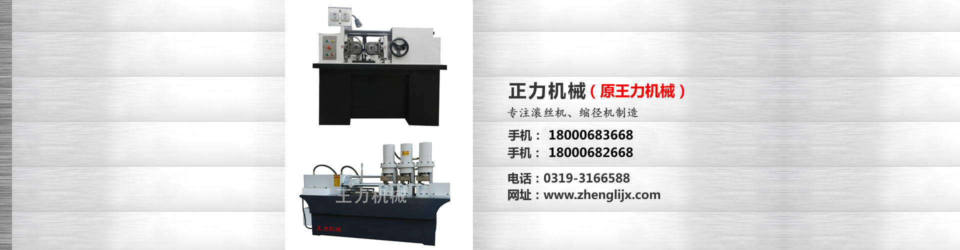 邢臺(tái)正力機(jī)械制造有限公司是國(guó)內(nèi)高端平價(jià)滾絲機(jī)專(zhuān)業(yè)化制造企業(yè)。 本公司是集研制、開(kāi)發(fā) 、生產(chǎn)與銷(xiāo)售為一體的大型機(jī)械廠家,現(xiàn)主要產(chǎn)品有:滾絲機(jī),螺紋機(jī)床,縮經(jīng)機(jī),拔料機(jī),冷軋壓圓機(jī),雙組拉絲機(jī)等各種機(jī)械。地處燕趙大地南部邢臺(tái)市,是省級(jí)重合同、守信用、產(chǎn)品質(zhì)量穩(wěn)定型企業(yè),河北省消費(fèi)者協(xié)會(huì)信的過(guò)產(chǎn)品,產(chǎn)品暢銷(xiāo)全國(guó)各地,深受用戶(hù)的好評(píng)。          現(xiàn)擁有Z28-40、80、150、200、280、63型系列在五金建筑、汽摩配件、交通電力、標(biāo)準(zhǔn)件制作等高精度產(chǎn)品加工行業(yè)中,對(duì)高強(qiáng)度螺紋、網(wǎng)紋、花鍵、直斜紋、梯形螺紋、特殊軸類(lèi)的滾軋加工有很強(qiáng)的優(yōu)越性,以高效、精密、快捷的工作原理深受廣大用戶(hù)的信賴(lài)。         專(zhuān)用的液壓縮徑機(jī)WL-25、36、48、60、型操作簡(jiǎn)便,適用范圍廣,生產(chǎn)效率高,使金屬擠壓快速成型,節(jié)約了原材料,提高了金屬密度和抗拉強(qiáng)度         本公司長(zhǎng)期供應(yīng)各種滾絲輪、縮徑機(jī)模具等各種配件。          產(chǎn)品暢銷(xiāo)河北,河南,山西,山東、遼寧、黑龍江、吉林、北京、天 津等省市自治區(qū)。我們不斷引進(jìn)國(guó)內(nèi)外先進(jìn)技術(shù),不斷優(yōu)化產(chǎn)品結(jié)構(gòu),精心鑄造產(chǎn)品質(zhì)量。王力品牌系列滾絲機(jī)、縮徑機(jī)、絲杠機(jī)是根據(jù)國(guó)內(nèi)的先進(jìn)機(jī)型加以改進(jìn),具有結(jié)構(gòu)設(shè)計(jì)科學(xué),結(jié)構(gòu)合理、能耗低、精度高、 使用壽命長(zhǎng)等優(yōu)點(diǎn)。         我們正被更多的朋友接受,認(rèn)可,因?yàn)槲覀冇谜嬲\(chéng)……